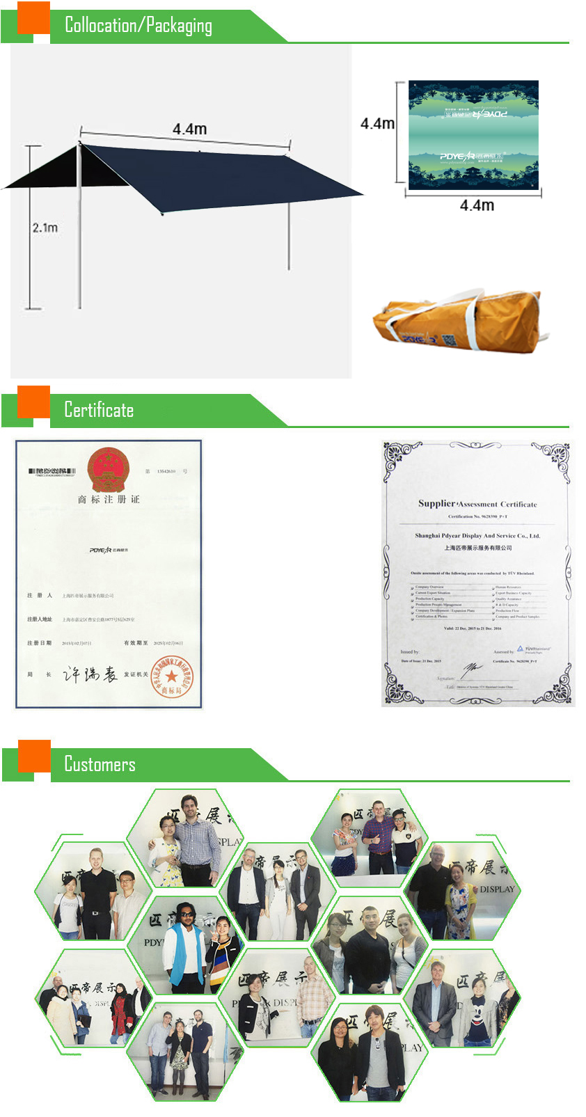 Equipped with high-quality tent frame, our advertising tents can guarantee the stability even in some windy weather. This sized tent is the perfect promotional tool for maximizing branding